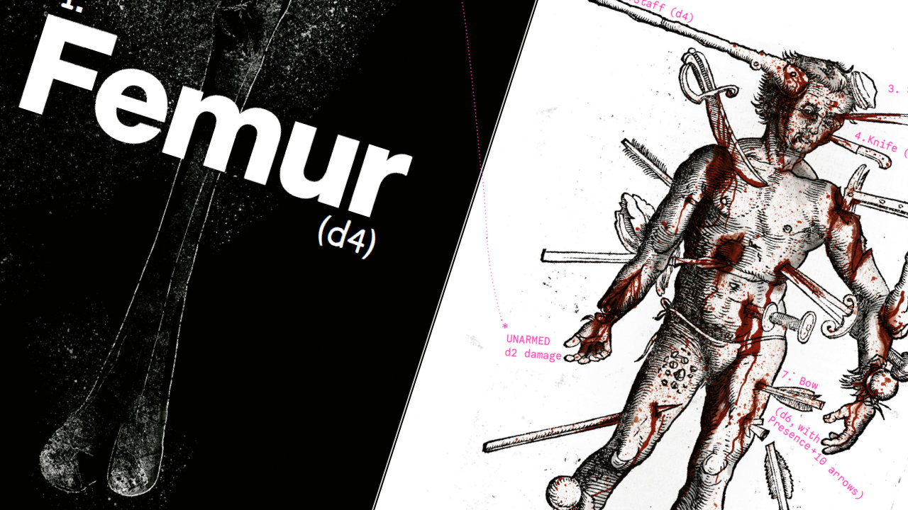 MÖRK BORG successfully leverages public domain art in interesting ways to create a distinctive look (example). It’s not uncommon to see woodcuts and other public domain art in TTRPG products. Looking at the Wound Man page in the MÖRK BORG book shows, however, how the art is truly incorporated into the design.