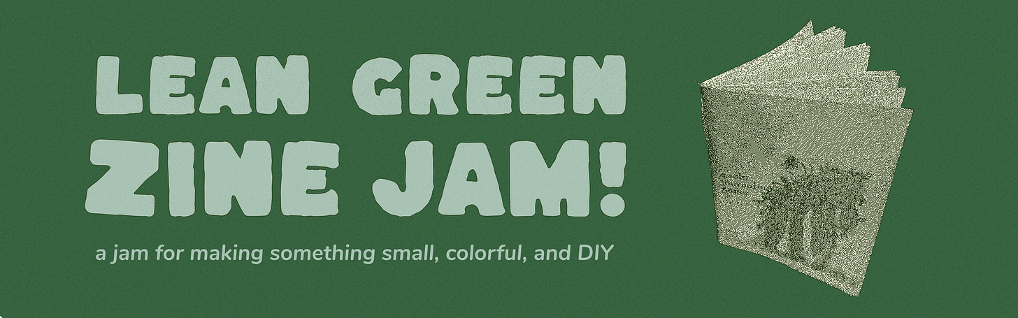 Q1. What particular moment or project inspired you to create Lean Green Zine Jam?