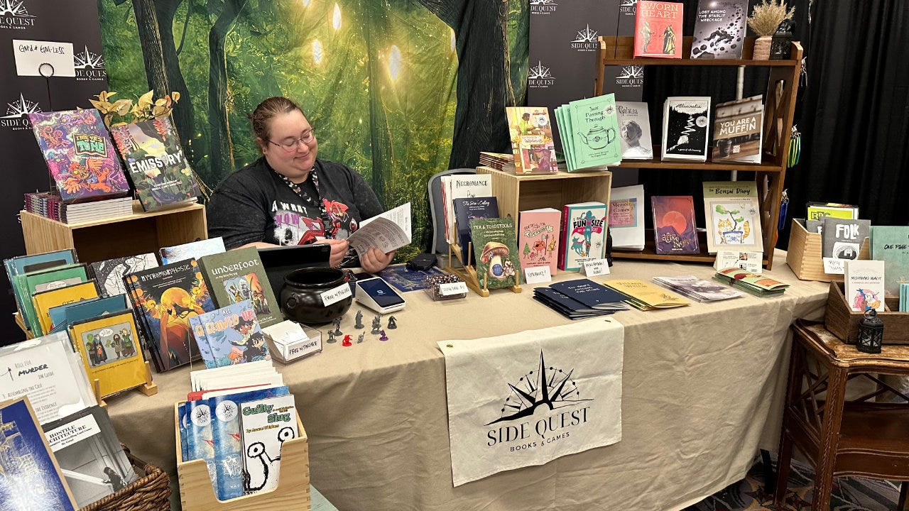 This year, Side Quest Books & Games had a table in the PAX Together room at the convention. They worked with indie creators to source books that might otherwise have too small of print runs or presence to get featured, along with some more well-known titles. If you look closely, you might even spot You are a Muffin and Make Your Own One-Page RPG in the photo above. It was great to finally meet Caroline (the owner) in person!