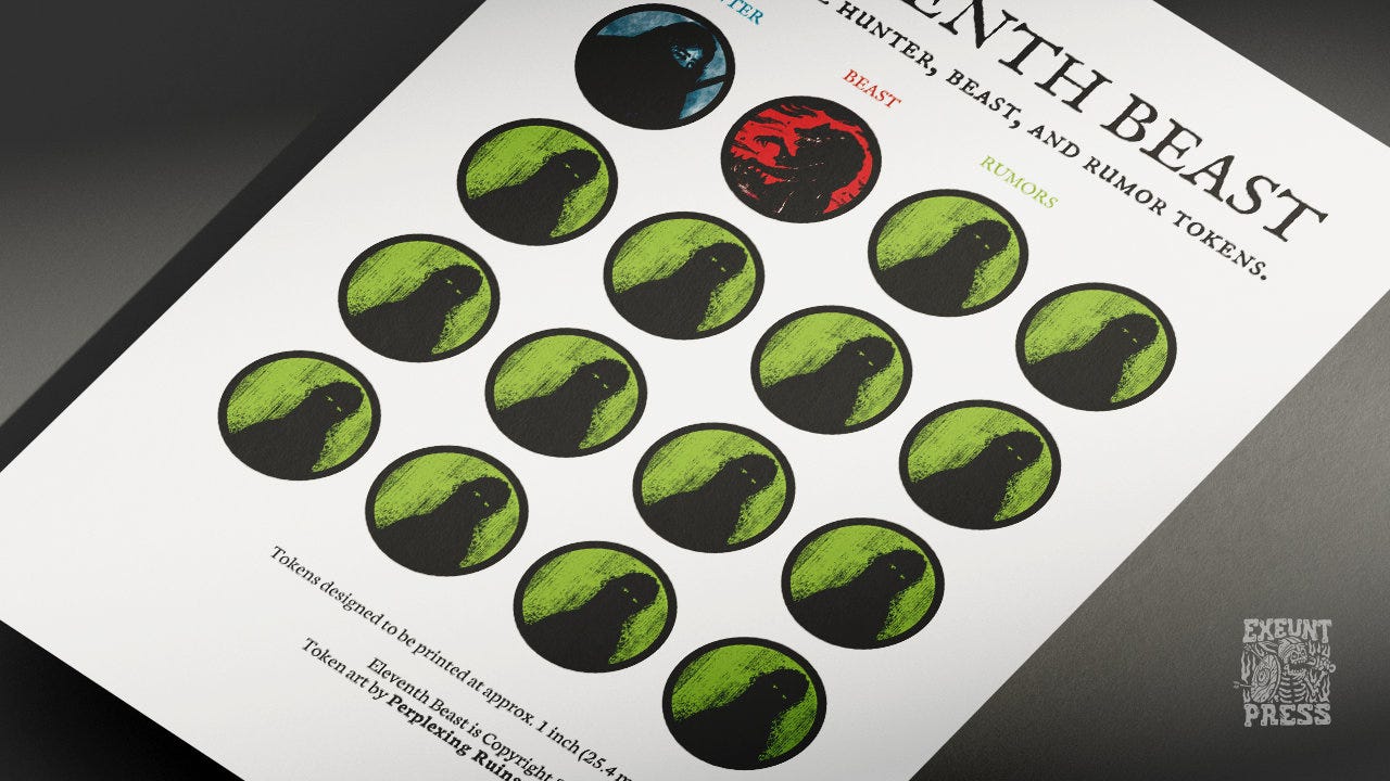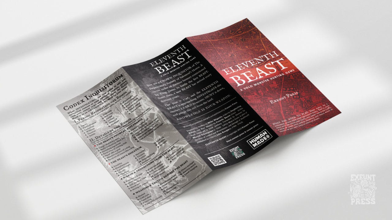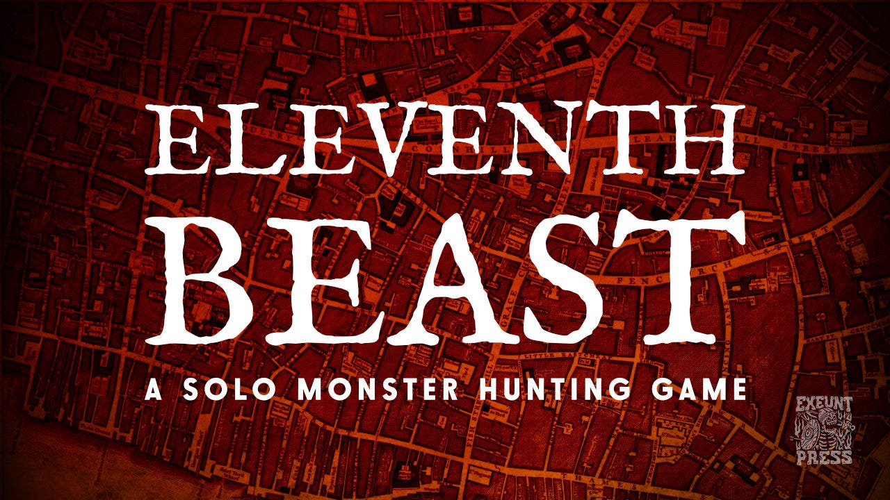 Eleventh Beast is a solo monster hunting game with journaling and drawing elements, available now at exeuntpress.itch.io.