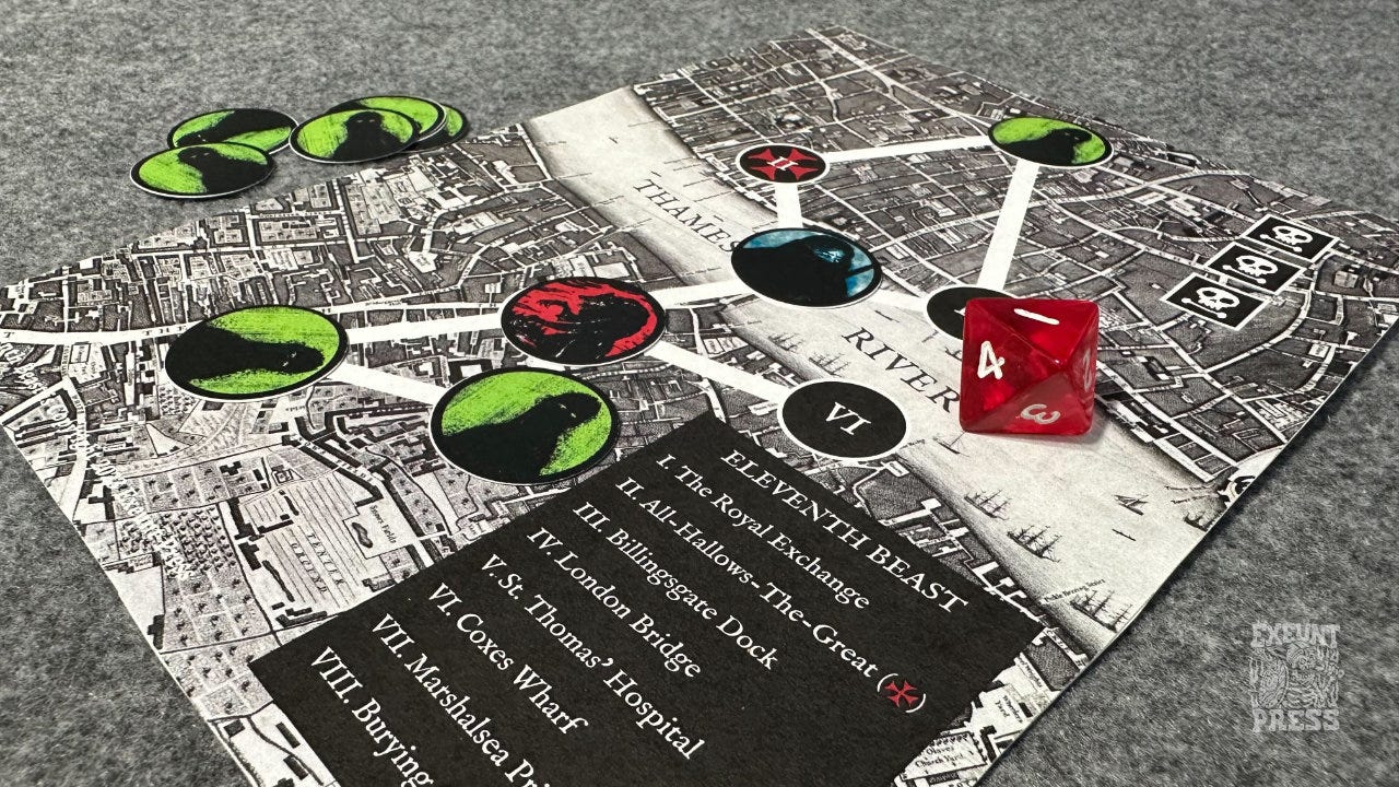 The bones of this game have been bouncing around my head for a long time. I wanted a point-crawl around London, but with pressure and tough choices.