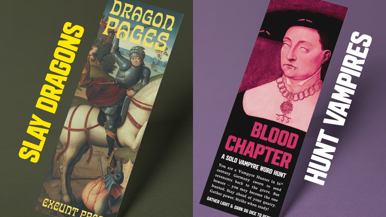 Slay dragons and hunt vampires with these two new bookmarks created for the Unknown Dungeon's TTRPG Bookmark Jam. Free community copies available.